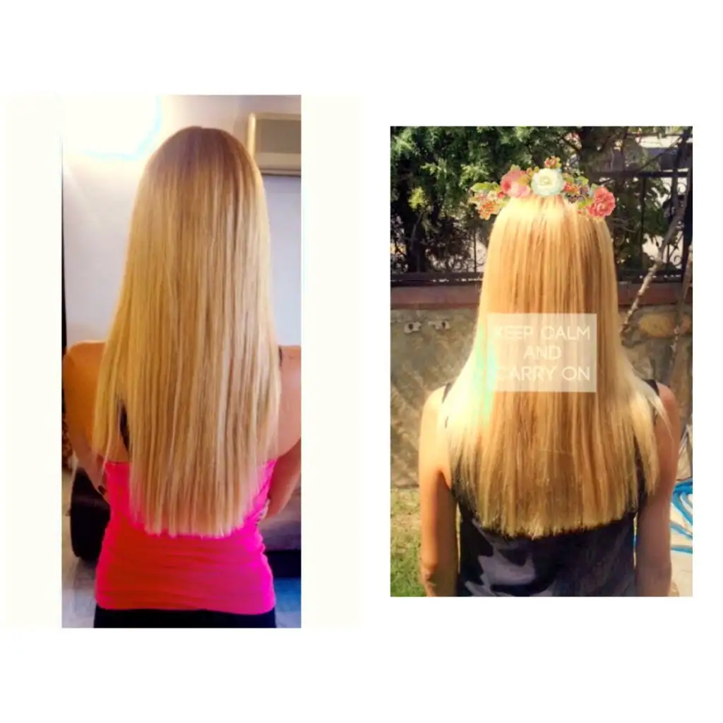 Evet saçlarımı bugün çektim. Uzama boyutu bana normal geldi fakat bir şey fark ettim. Saçımı ilk eklediğimde küt kesim iken şuan hafiften v (üçgen) kesime dönmüş saçlarım. Sanırım 2 kere üst üste yaptırdığım oryelden kaynaklanıyor:) ben üçgen kesimden nefret ederim.. Bu yüzden saçımın kopmuş kısımları uzayınca tekrardan kütleştiricem onları:))