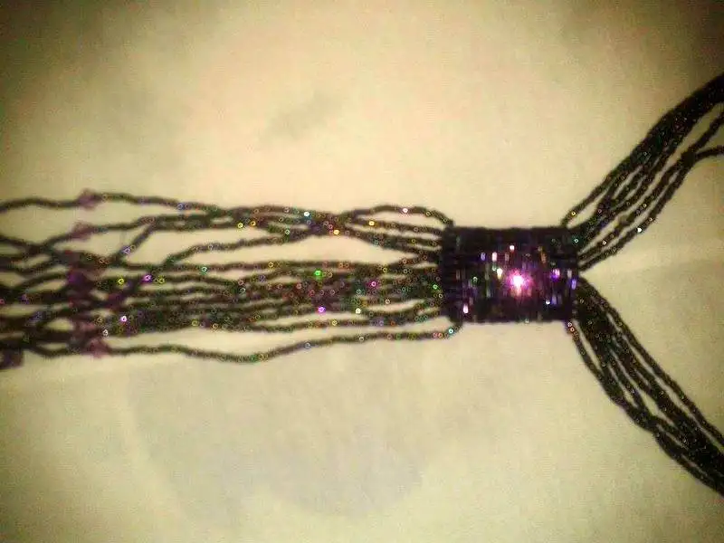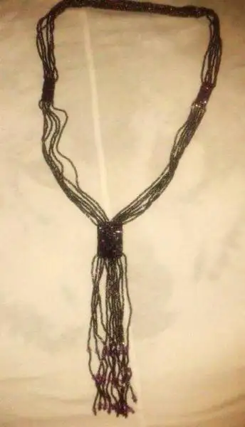 kravat şeklinde harika renkleri olan kolye uzundur komple boynu kaplar fotoda pek belli olmadı iyi bir paraya alınmıştır..