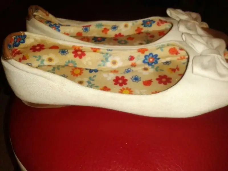 2...BEYAZ KETEN BABET İÇİ ÇİÇEK dESENLİ 39 NO (2 KEZ GİYİLdİ..BEYAZ OLdUGU İÇİN HAFİF TOZLANMIŞ BU YUZdEN 10TL)