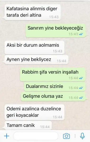 Canim dua et nolur kaanin beyninde kanama varmis. Ameliyata alcaklarmis. Kafatasini cikarip duzelince geri takcaklarmis ama masada kalma ihtimali var kalmasa bile artik yuruyemez konusamazmis. Cok kötüyüm