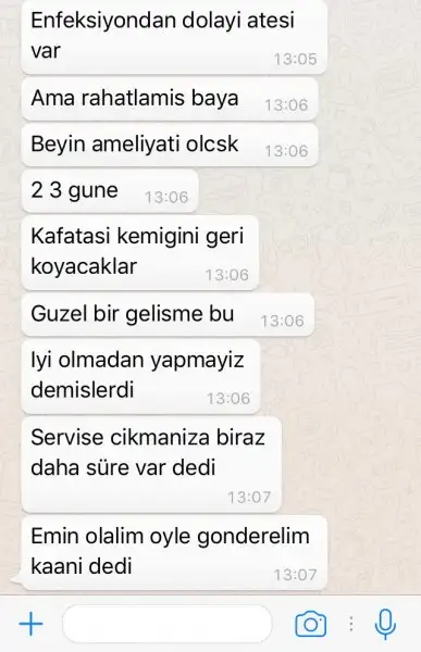 CNm pınara ayın 5 ine kadar refakatçi izni vermişler.normalde yoğun bakımdakilsre vermiyorlarmış ama pınara vermişler.servise çıkarsa da mutlaka yine verirler diye düşünüyorum.çünkü annesiz olmaz yani bebek çok küçük.ücretsiz mümkün değil alamam diye yazdı.inşallah dr lar yardımcı olur.Ameliyat olacağı günü saati bize bildir de dua edelim canım. Allahım Kaan’a şifa anne babasına ferahlık versin. Canım, Pınar işe başladı mı haberin var mı ? Doğum izni bitmişti işe başlayacaktı en son.