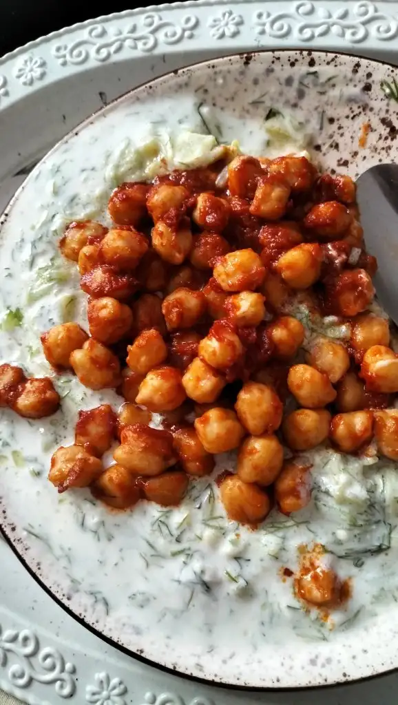 Akşam yemeğim kabaklı yoğurt içinde dereotu ve sarımsak üstüne tok tutsun diye nohut yaptım salçalı hemde sıkılmıyayim diye gayet lezzetli oldu dün gece çok acıktım çünkü 😂