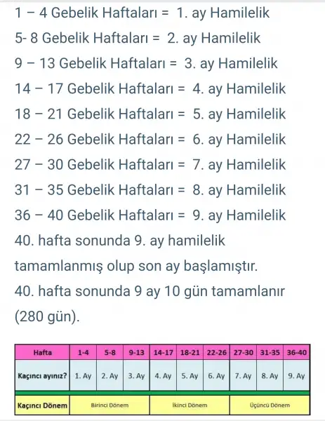 12-13 hafta bhamilelik dönemlerine 3 ay hamilelik denir