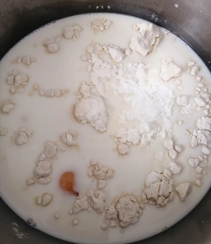 Muhallebili için krem şanti ve pınar labne hariç büyün malzemeleri tencereye alıyoruz iyice çırpıp ocağa koyuyoruz Eki Görüntüle 2832825