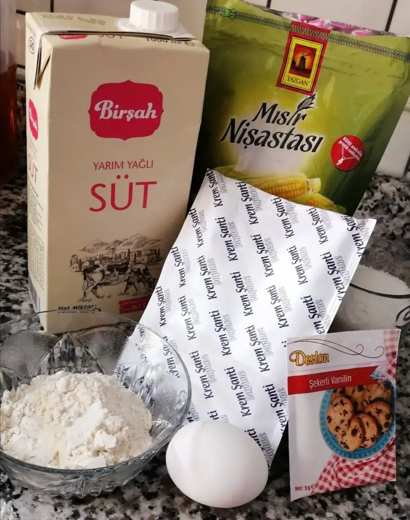 Muhallebili için krem şanti ve pınar labne hariç büyün malzemeleri tencereye alıyoruz iyice çırpıp ocağa koyuyoruz Eki Görüntüle 2832825