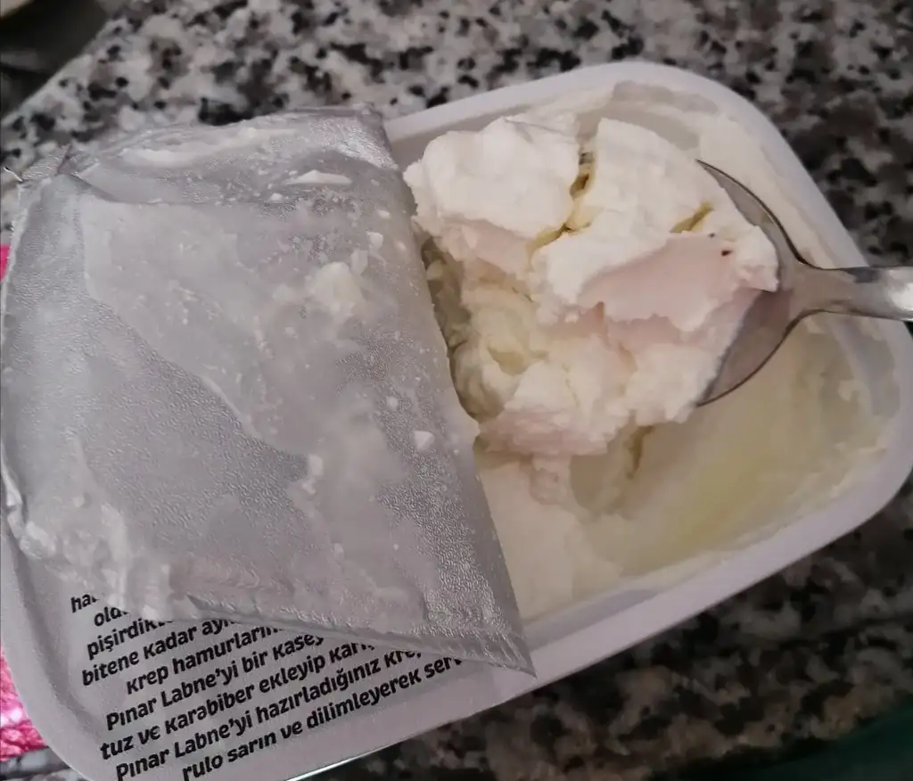 Muhallebi pişik ilk sıcaklığını attıktan sonra krem şanti ve pınar labneyi ekleyip çırpıyoruz ve hazır