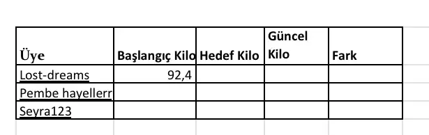 Böyle bir şey yaptım kızlaar bk - hedef k yazarsanız listeye yazacağım her pazar tartıldıktn sonra gk ve farkı doldrrz .