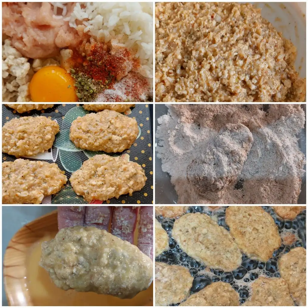 tüm malzemeleri birleştirip köftemizi yoguruyoruz. Köfte harcamizi yarım saat dolapta dinlendiriyoruz. Dinlenen harcı elimizi ıslatıp şekillendiriyoruz. Köftelerimizi de biraz dolapta dinlendiriyoruz. Köftelerimizi önce una sonra yumurtaya bulayıp kızgın yağda arkalı önlü pişiriyoruz.