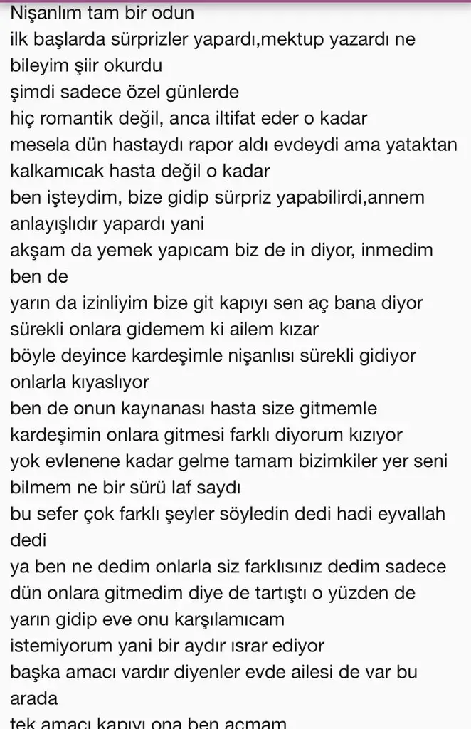 Öncelikle lütfen taşlamayın, çözüm verin kendimi düzeltmek istiyorum. Ciddi bir ilişkim var 9 ay oldu, aileler tanıştı, ramazan bitince isteme olacak. Erkek arkadaşım bana her gün iltifat eden, dışarıda hesap ödetmeyen, düğün harcamalarım için para gönderecek kadar düşünceli, özel günleri...www.kadinlarkulubu.com Asla ondan beklemezdim(uzun olmuş ama okuyun nolur)