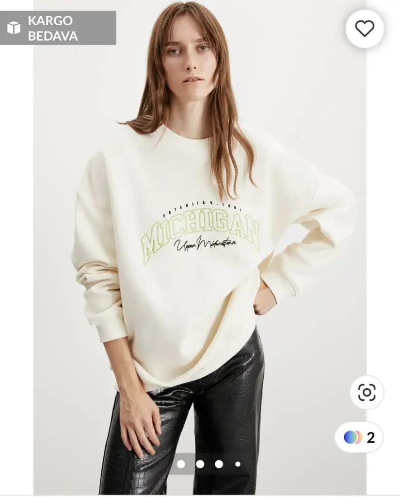 Ben bunu hem şu tarz sweatshirt ile hem de şöyle süslü tişörtlerle giyebiliyorum.