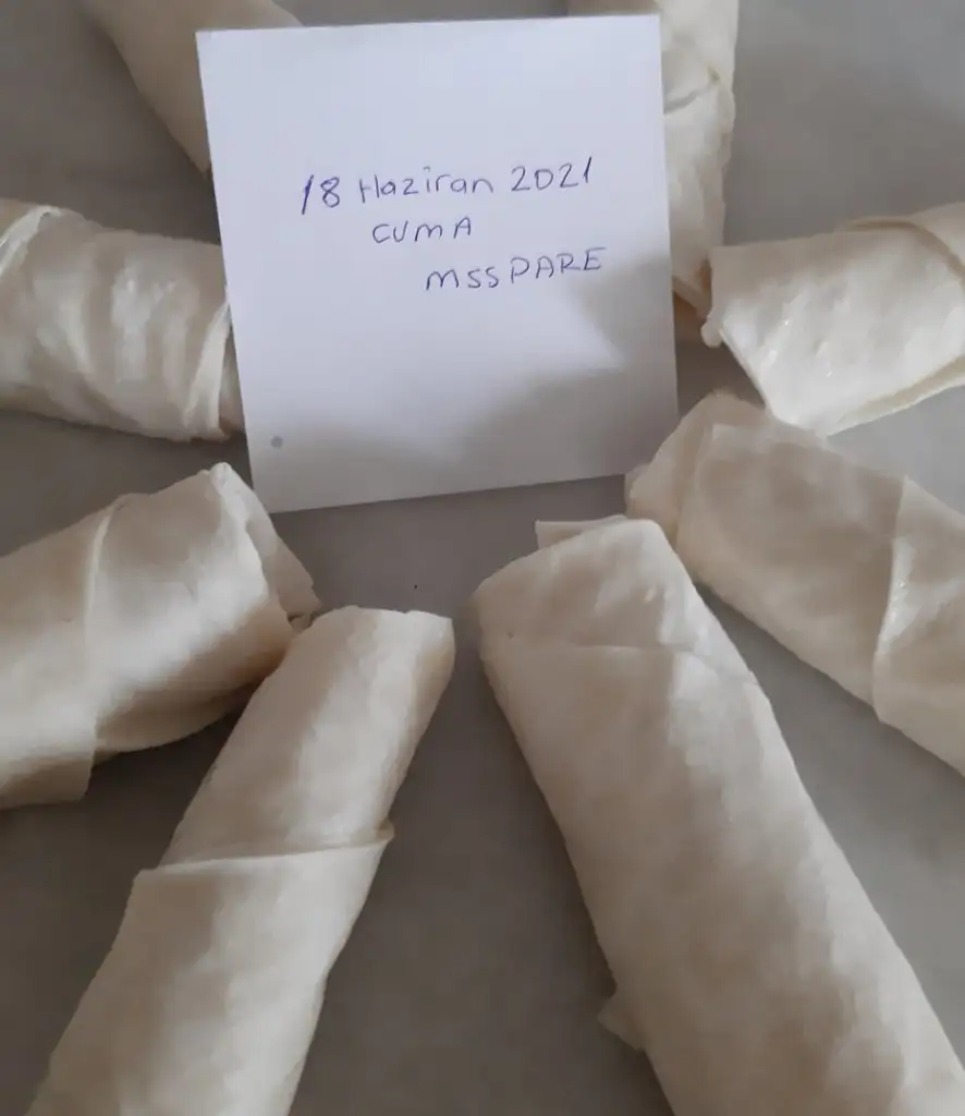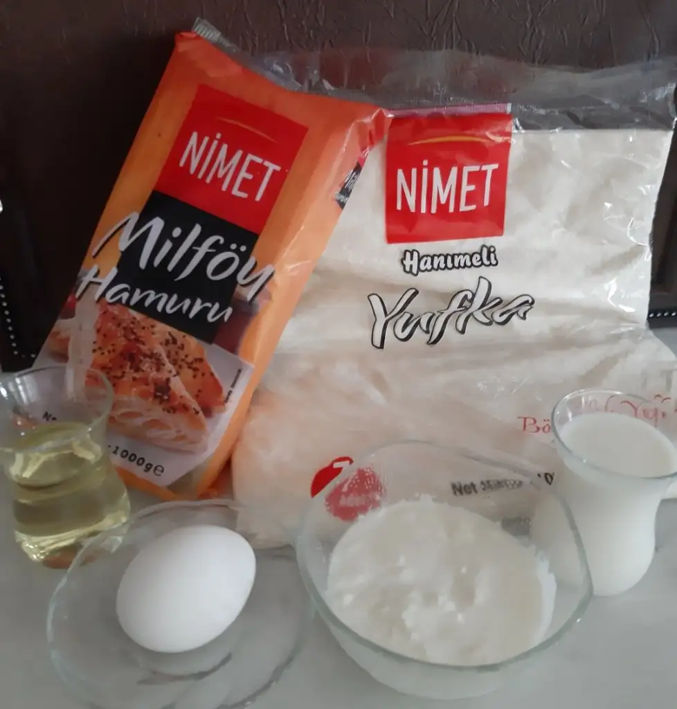 Hepsini sardıktan sonra sıra milföy hamuruna geldi