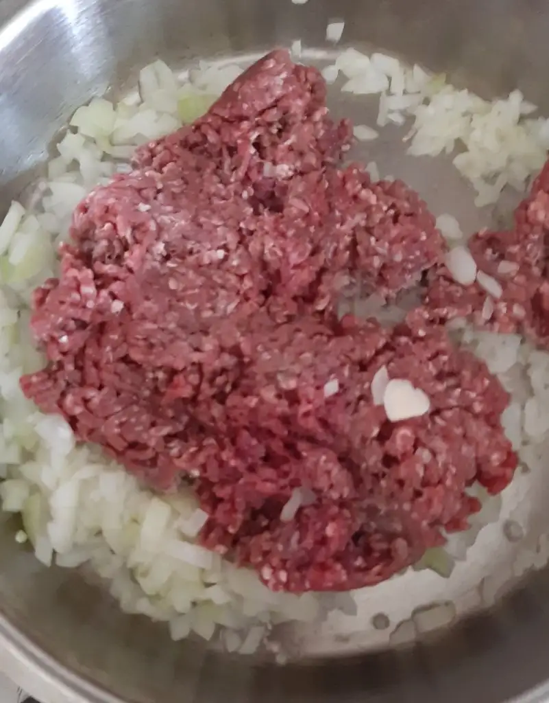 önce soğanları incecik doğuruyoruz ve tavamiza az biktarda sivi yağla birlikte kavuruyoruz sonra kiymayi ekliyoruz..