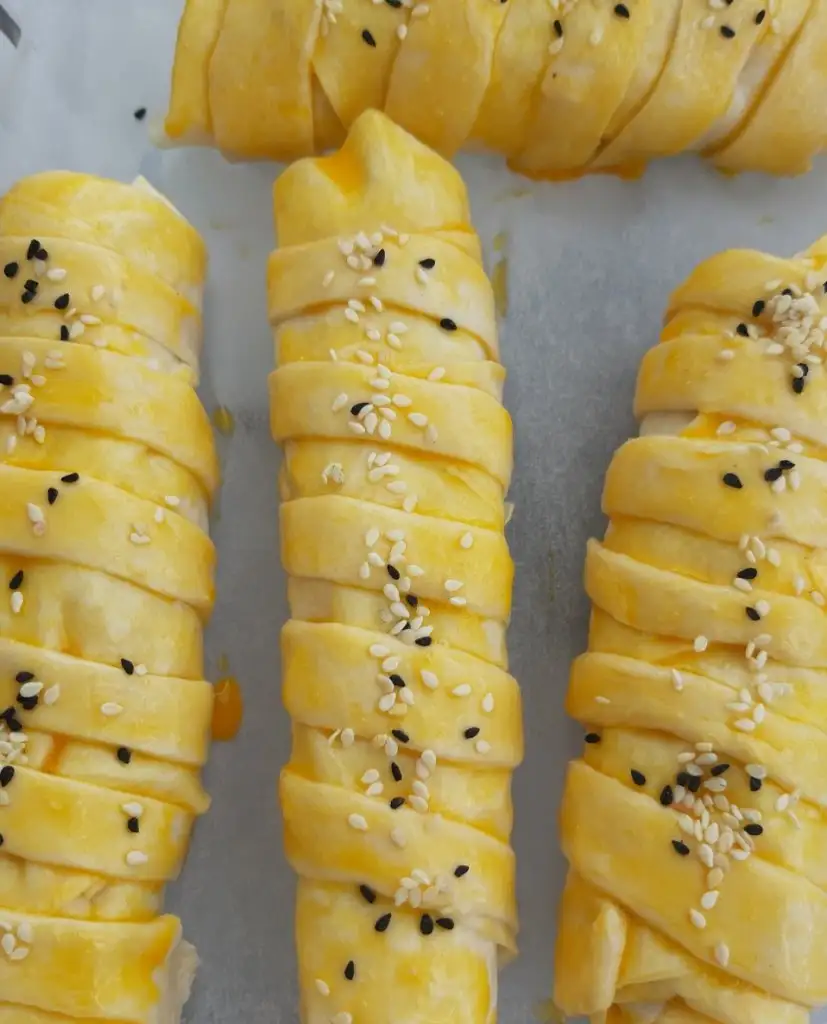 Isteğe bağlı ister üstüne çörek otu susam eklenebilir ister sade bırakabilir önceden ısıtılmış fırına sürüyoruz