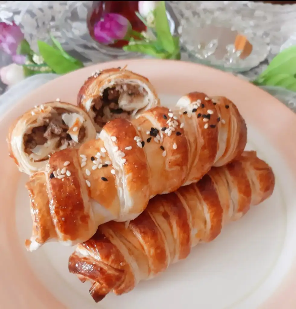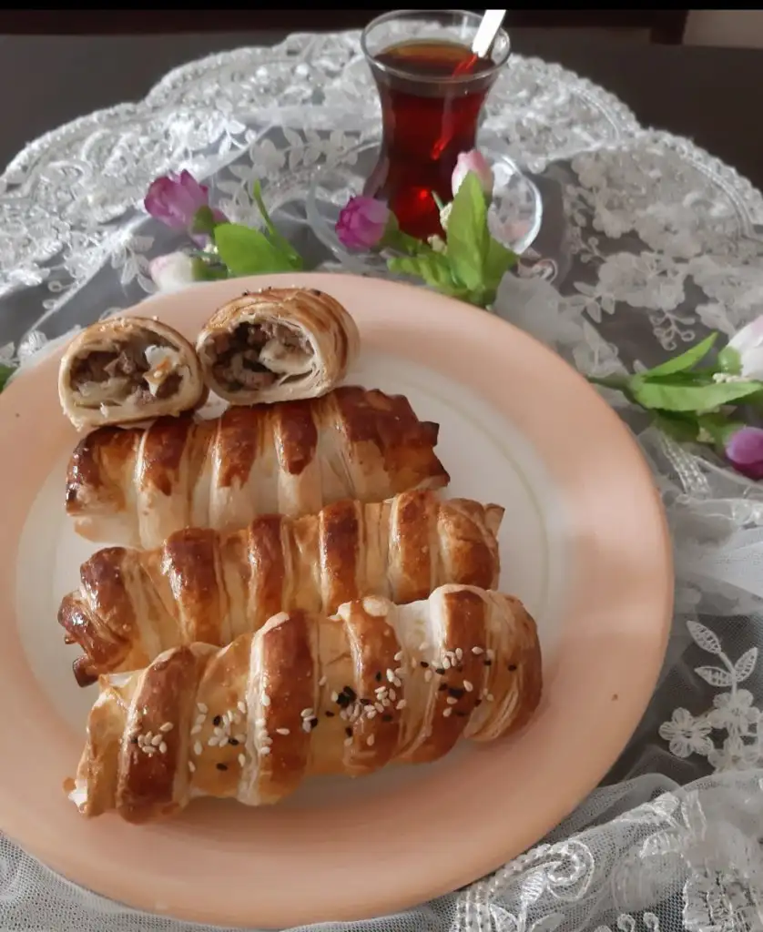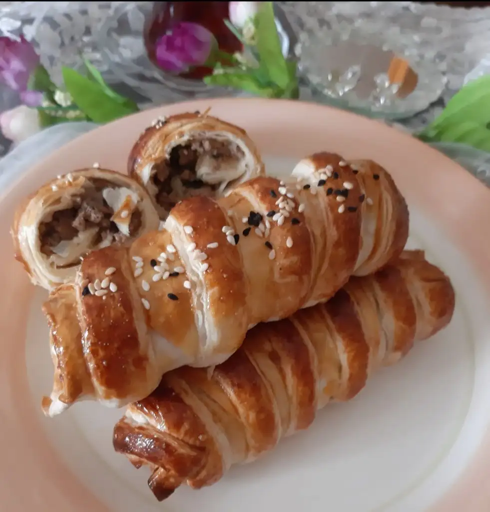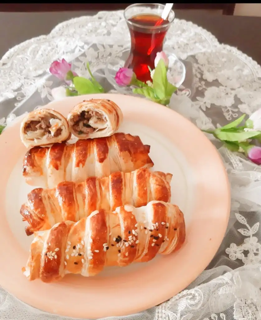 Sonra kıyma içimizi koyuyoruz kenarlarını kapatıp rulo şeklinde sarıyoruz