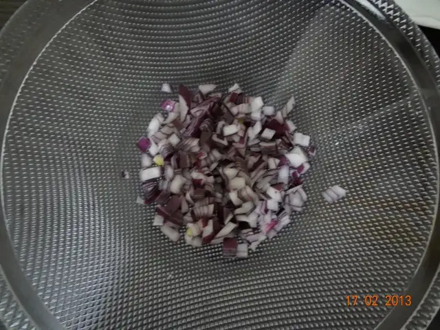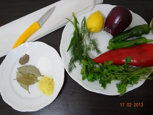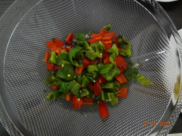 Dereotu ve maydanoz tercihe bağlı olarak doğranıp mor soğan ve biberlere eklenir.