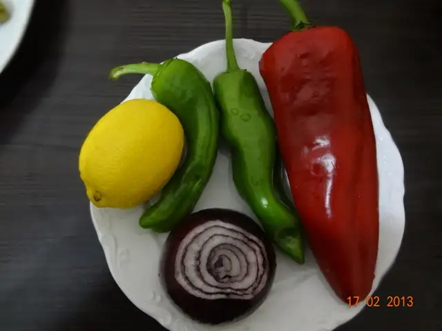 Biber tohumları ayıklanır, limon kabuğu soyulur. Biberler, soğan ve limon halka şeklinde doğranır.