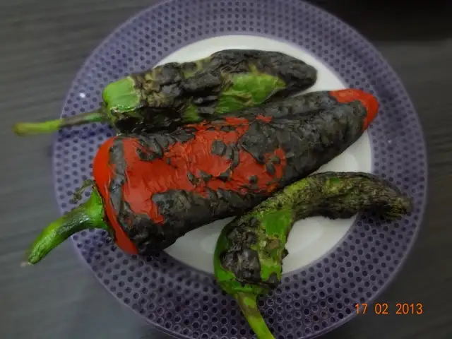 Kırmızı ve yeşil biberler 3-5 dakika kadar közlenir. Közlenen biberlerin kabukları soyulur ve tohumları ayıklanır.