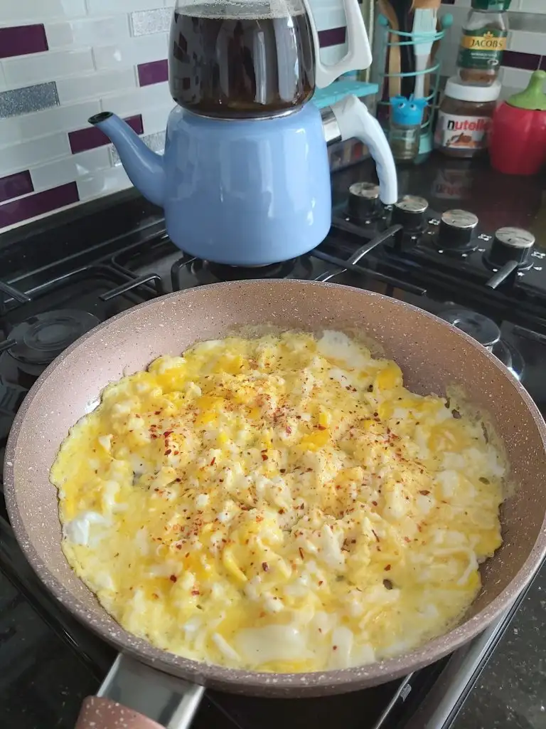 Tereyağında lor peyniri kavrulur üzerine rendelenmiş kaşar peyniri eklenir kaşar peynir eriyince iyice çırpılan yumurtalar eklenir, nefis çok ama çok güzel bi omlet olurafiyet olsun..