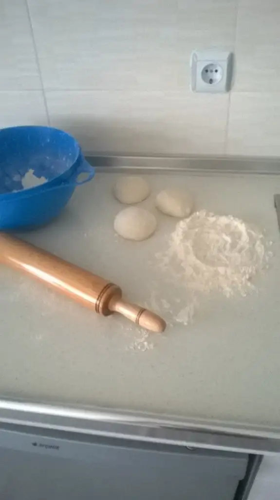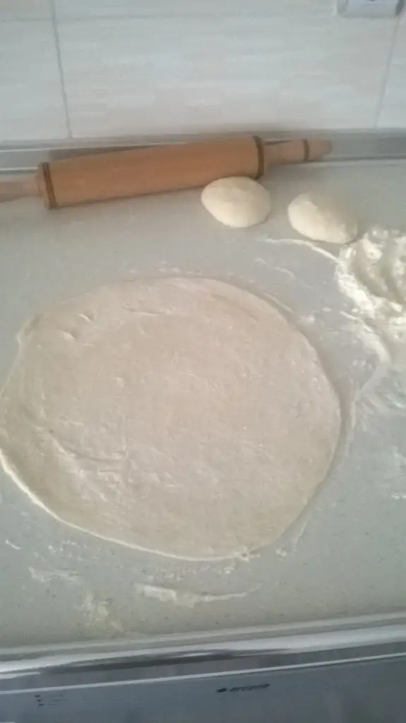 hamurumuzu bezelere ayırıyoruz. her bir bezeyi merdaneyle açıyoruz.