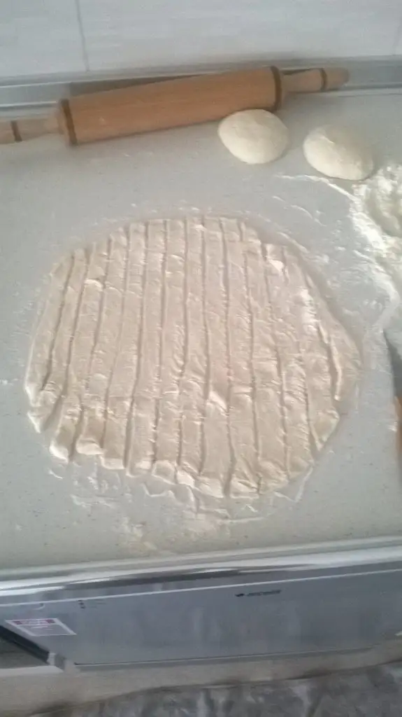açtığımız hamuru bıçak yardımıyla bölüyoruz uzun şeritlere