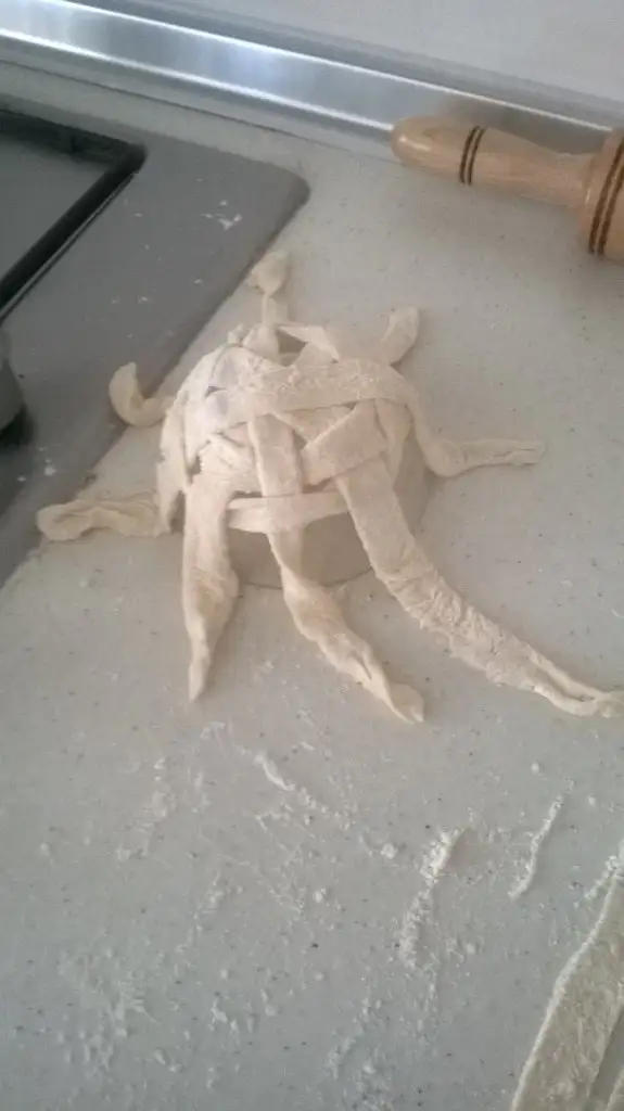 böldüğümüz hamurları yağladığımız kasenin üzerinde ağ şeklinde diziyoruz.