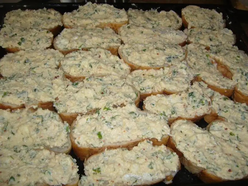 Ekmekler dilimlenir ve tepsiye dizilir..İç harcı karıştırılarak ekmeklere sürülür ve 175 derecede kızarana kadar pişirilir...