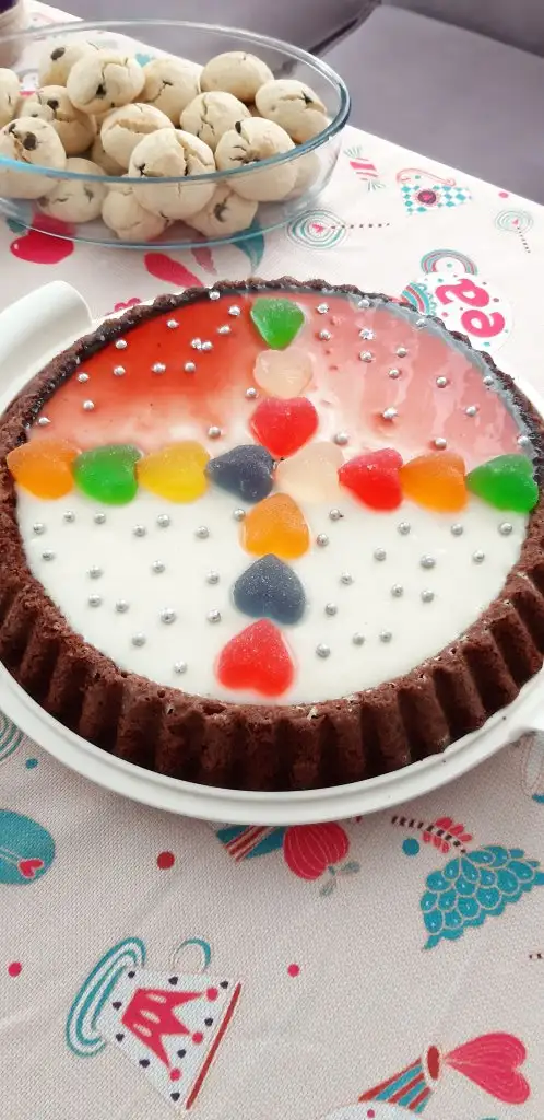 Marifetli hatun ellerine sağlıkEveeet ben yaptım tart kalıbında kek yapıp ortasına muhallebi koyuluyor ya ondan yaptım tüm halini göstereyimsana da afiyet olsunn bu arada