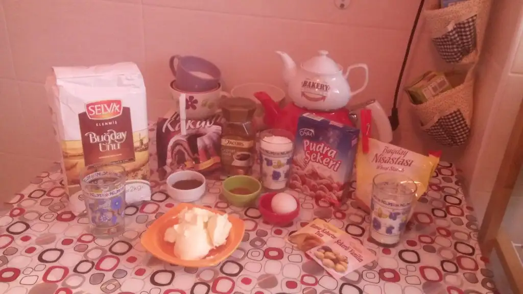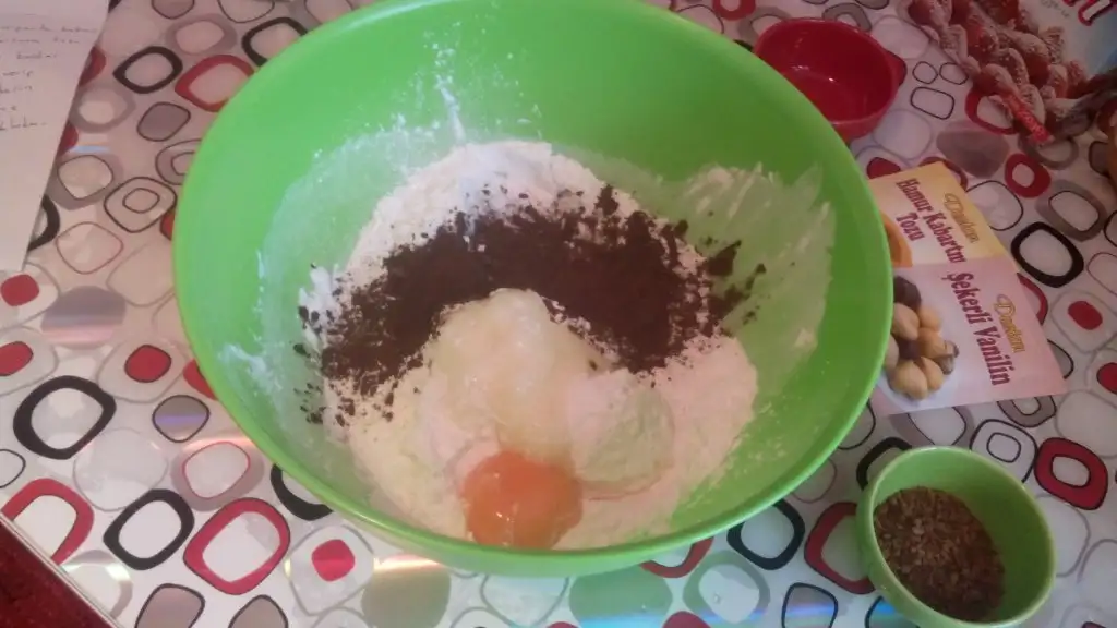 oncelikle yumurta,,margarin,,pudra sekeri,,nisasta,,kakao,,vekahveyi,,katip yoguruyoruz...