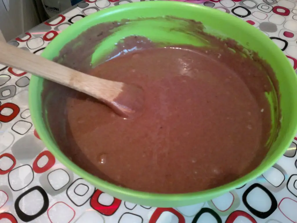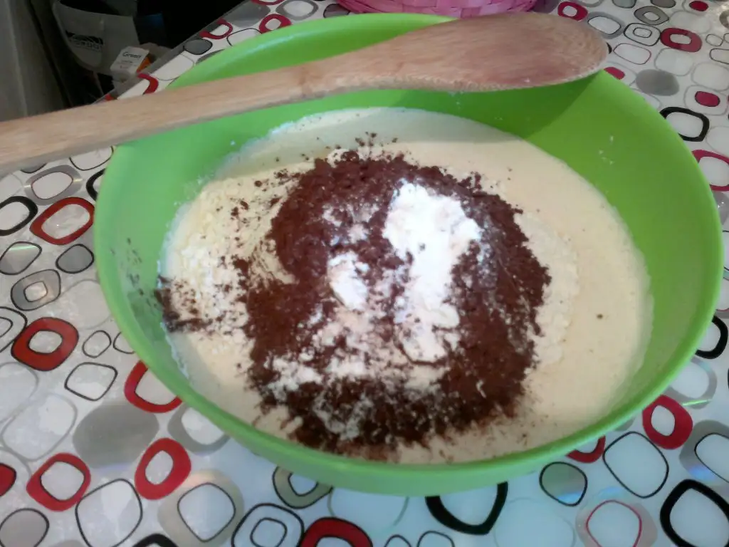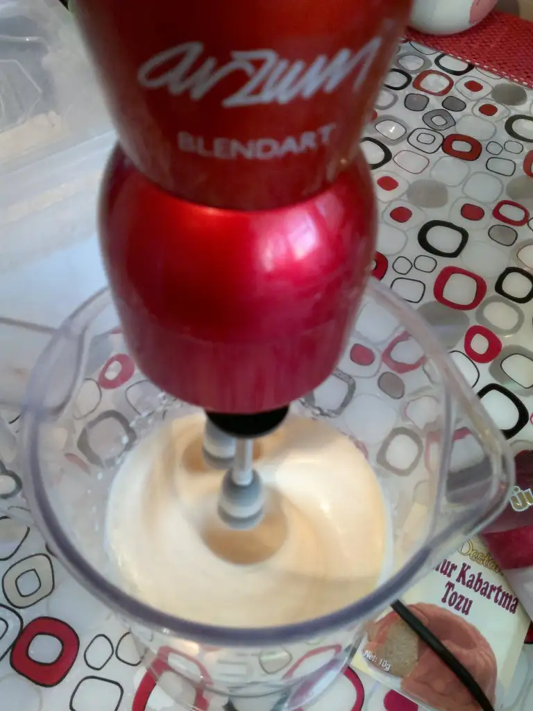 - yağı sütü ve diğer malzemeleri ekleyip tahta kaşıkla çırpalım..