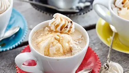 2 kişilik Türk kahvesini pişirin. 4 bardağa birer top vanilyalı dondurma koyun. Üzerine elinizle kabaca parçaladığınız 2’şer beze ekleyin ve her bardağa yarım ölçü gelecek şekilde pişen kahveyi paylaştırın. Kahvede yüzen dondurmanız çabucak hazır. Afiyet olsun.