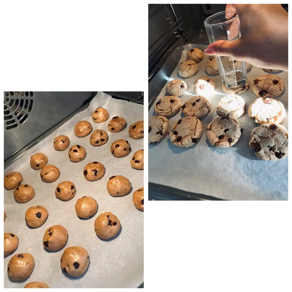 Hamurumuzdan ceviz büyüklüğünde parçalar koparıp yuvarlayarak önceden ısıtılmış 180 derece fırında 7-8 dk pişiriyoruz. Kurabiyeler çatlayınca bardağın tersiyle üzerlerine hafif bastırıp 9-10 dk daha pişirip fırından alıyoruz fırında fazla tutmak sertleştirir kontrollü olalım.