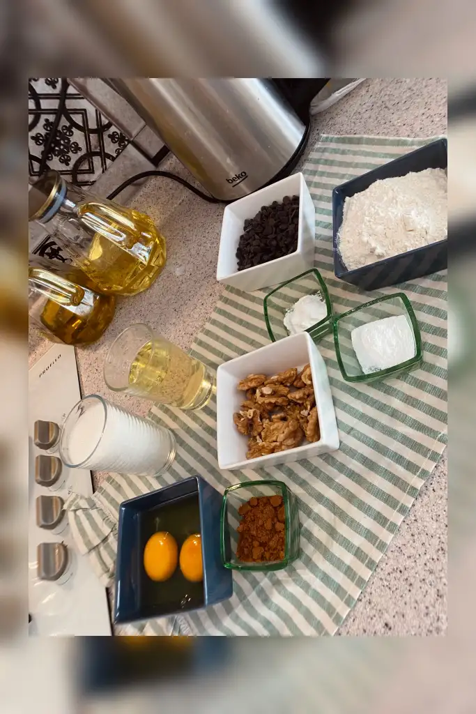 Cevizi küçük parçalar haline getiriyoruz. Un hariç diğer malzemeleri ilave edip karıştırıyoruz. Kontrollü bir şekilde unumuzu da ilave edip yumuşak bir hamur elde ediyoruz.