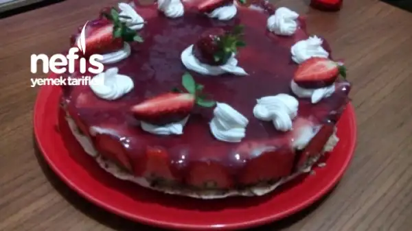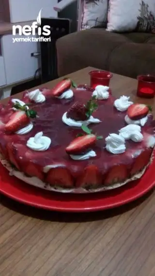Bu şekilde bir gece dolapta bekletip, ertesi gün şanti sıkıp, çilek yerleştirip servis yapın.AFİYET OLSUN