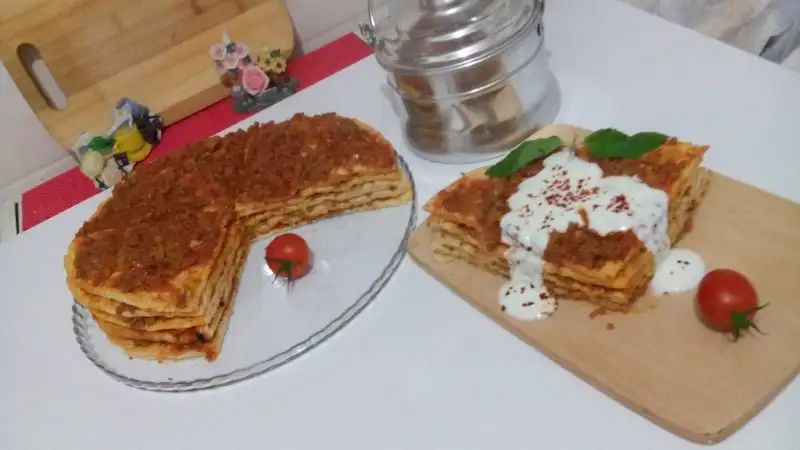 - Üzerine kıymalı sostan gezdirip üzerine tekrar lavaş koyun.