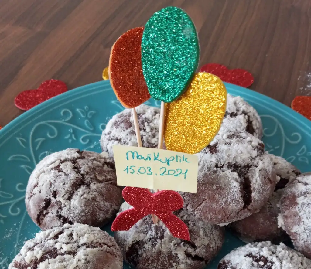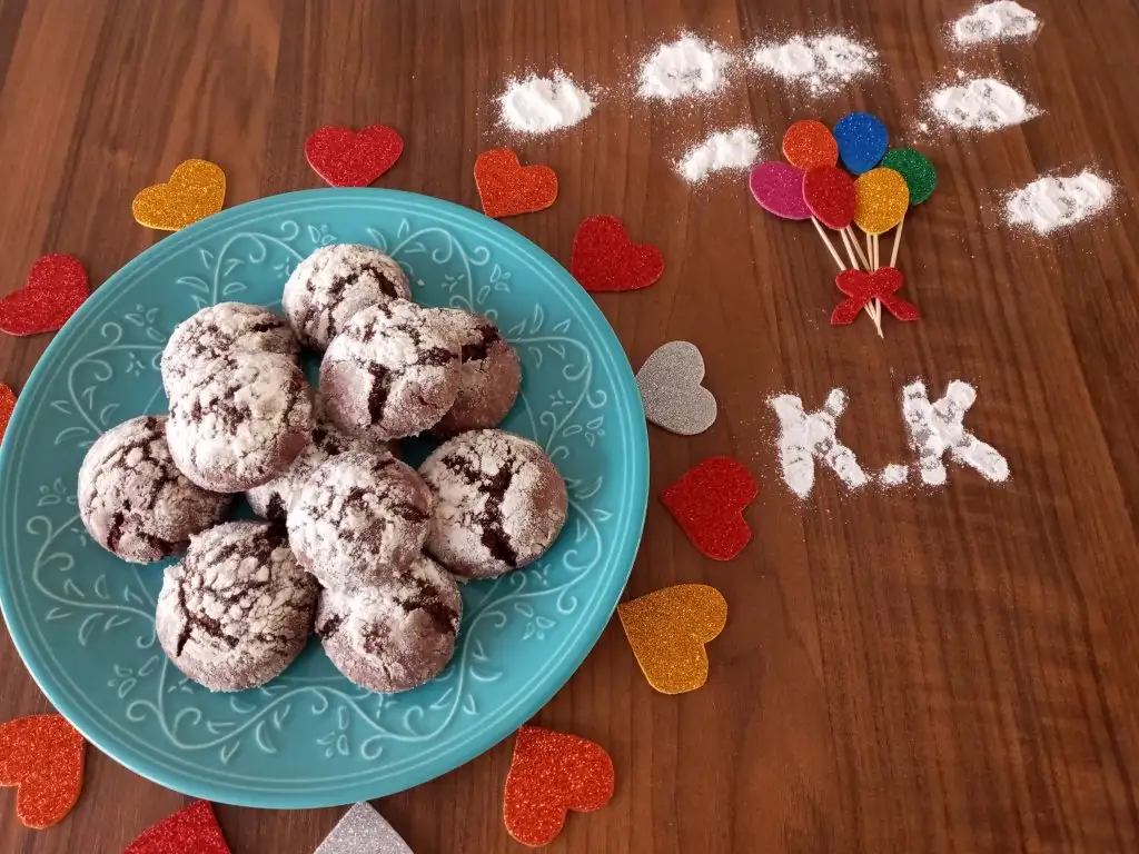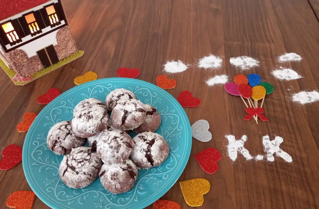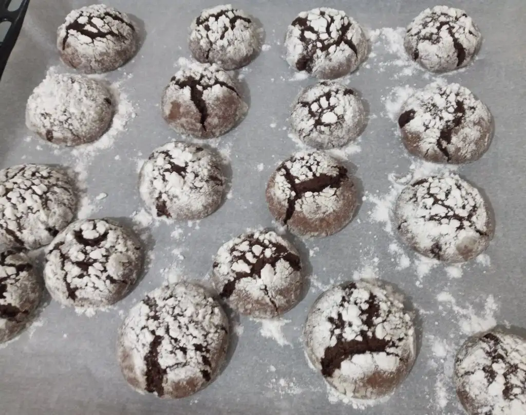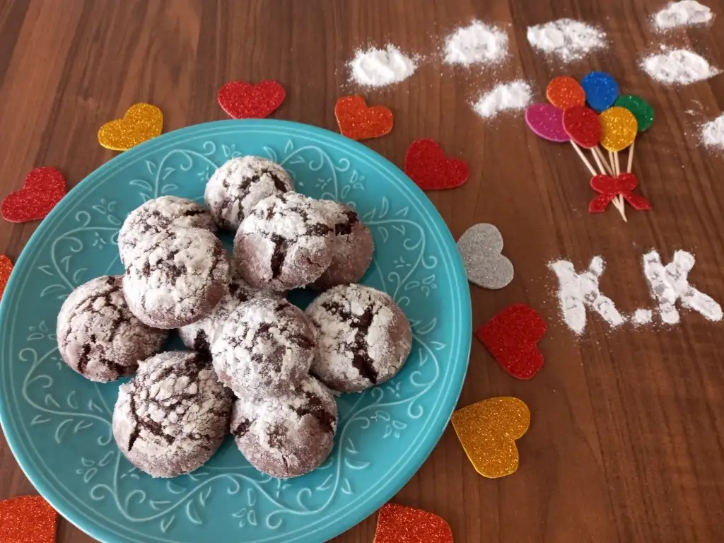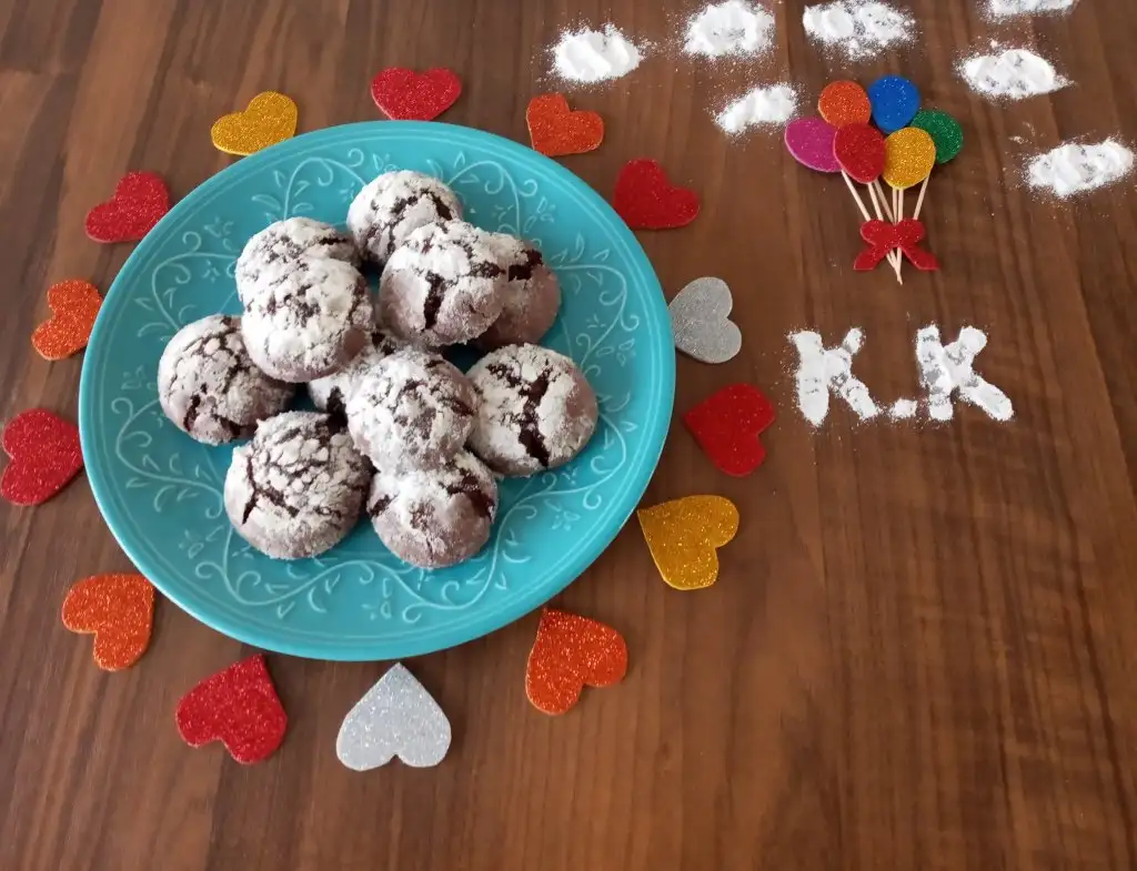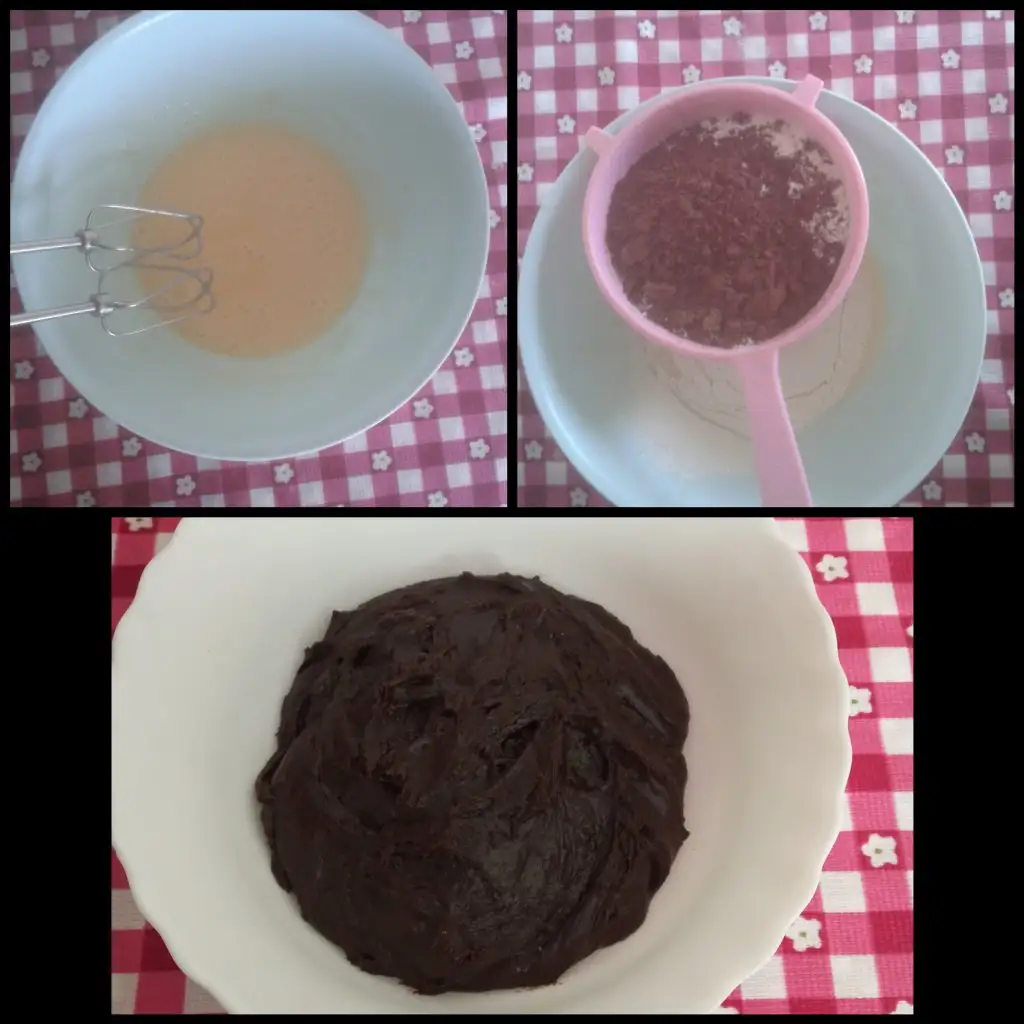 Üzerine kakao, vanilya, kabartma tozu ve unu eleyerek karışıma ilave edip, Bir spatula yardımıyla malzemeler birleşinceye dek karıştırıyoruz. Hamuru kurabiye hamurundan cıvık olacak ve daha çok brownie hamuruna benzeyecek.Hamuru streç filme sararak en az 2 saat buzdolabında dinlenmeye bırakıyoruz.