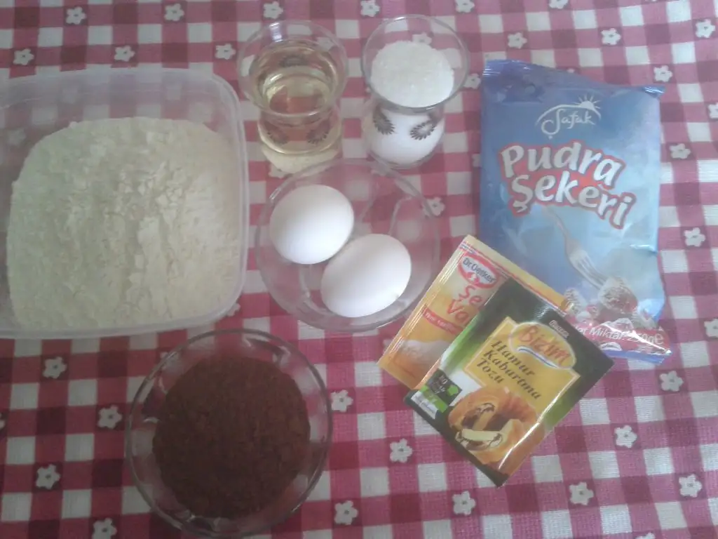 Yumurta ve şekeri mikserle şeker eriyene kadar çırpıyoruz,Yağı katıp mikserle biraz daha çırpıyoruz.