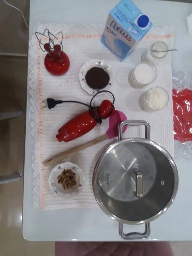 yapılışı ; tenceremize un , kakao , şeker , sütü ilave edip karıştırılıp eklenir. orta ateşte karıştırılarak kıvam alana kadar