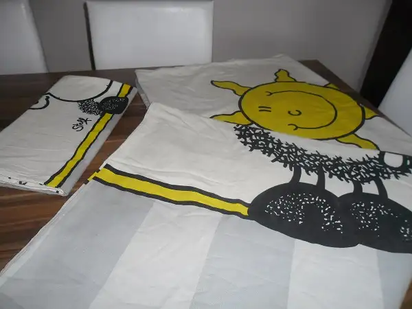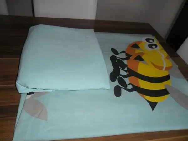 açık mavi çarşaf ama streçlerden değil,nevresim kılıfı bulamadım:)