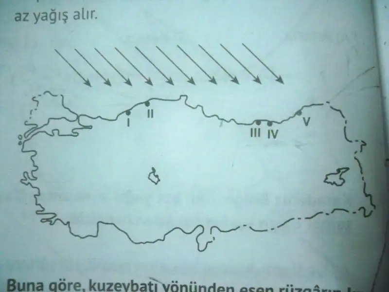 Cevap ne? Gerçekten böyle düşünüyorum, her şeyi unut rüzgar yönünü haritayı vs. Karadeniz de en fazla yağış alan yer doğu karadeniz zaten orada işaretlediği yerler olamaz en az alan orta karadeniz ama ortada il işaretlememiş. Batıda da en batıda olan en az yağı alır yükseltisi en azdır çünkü mantıken böyle.
