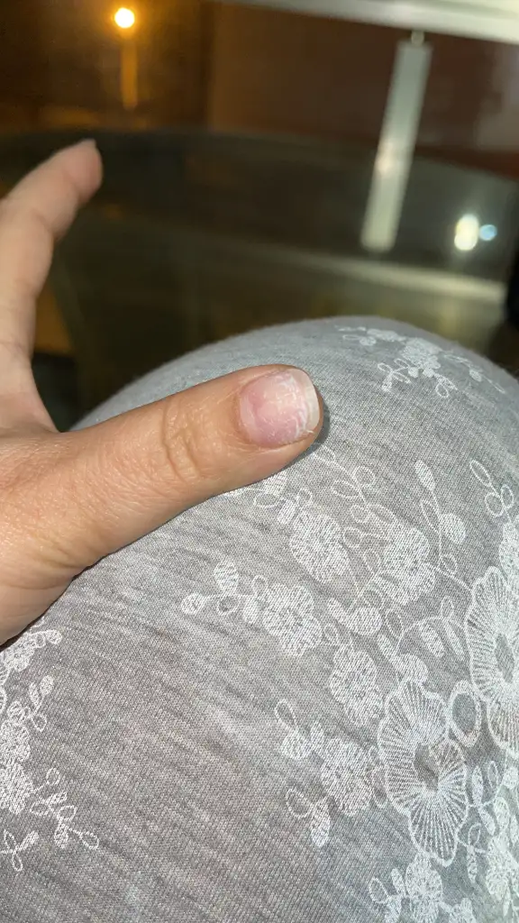 Tırnağınız soyulmuş onun görüntüsü bu. Tırnak çok ince katlardan oluşuyor yıpranınca üst katlar kopup gidebiliyor bu şekilde.