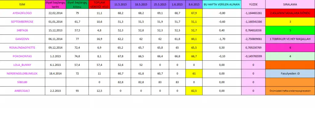 YOK BE BENDEN Bİ CACIK OLMAZ BU HAFTA AMA MERAK ETTİMya hu dur sen de kız az kilo alımının takibini yapıyo . nolmuş bildirmişse :)) Birinci olamıcan diye mi korkuyon köfteeee :))))))