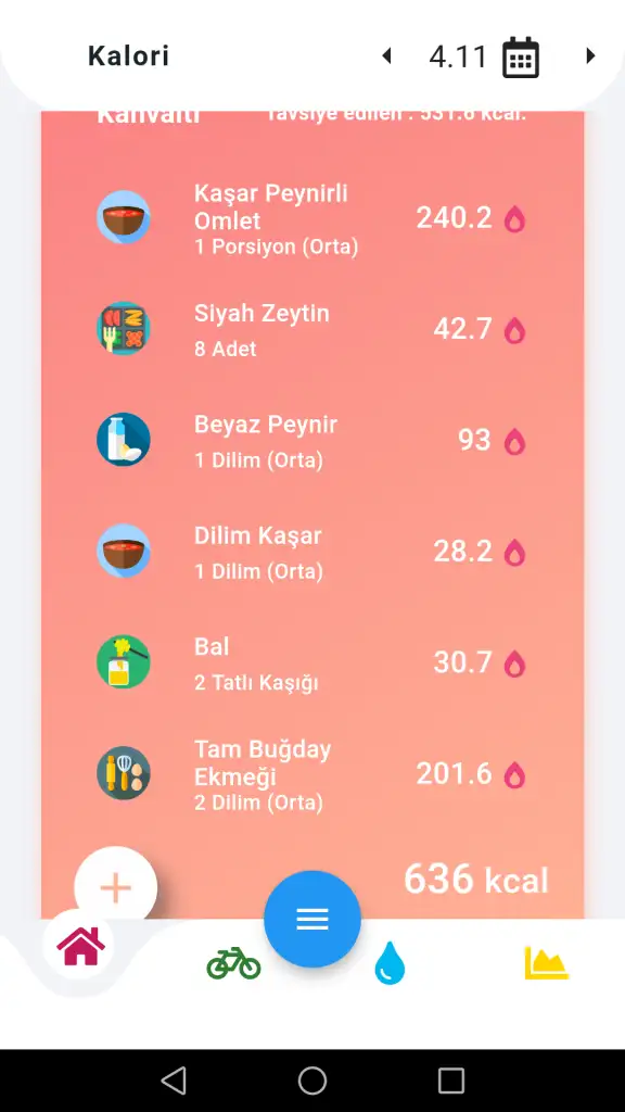 Merhaba. Ben programdan bakmıyorum. Mutfak terazim var yediklerimi ölçüp ona göre hesaplıyorum. Mesela 1 dilim kaşar 28 kalori yazıyor ya 28 kalori olabilmesi için o dilimin 10 gram olması gerekiyor mesela. Beyaz peynir 93 kalori yazmışsın bu da yaklaşık 30 grama denk geliyor gibi. Yediklerinin içindeki malzemeleri tek tek hesaplayarak yazarsan daha doğru olur. Son olarak kaşar peynirli omlet 240 kalori olabilmesi için 30 gram kaşar, 10 gram tereyağ ve 1 yumurta katılarak yapılmış olması gerekir. Malzeme miktarları değişince kaloride değişecektir haliyle. Bu şekilde malzemeleri gramajıyla hesaplamak daha doğru sonuç verirÖrnek olarak yediklerimi attım.ben yalnız bişey yapmıyorum degilmi bu hespalama doğrudur,