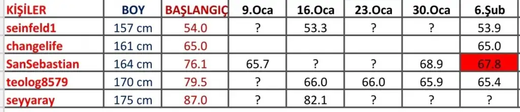 Geçen hafta 68.9 muşsun vermiş görünüyorsun aslındakilom 67.8 canlar ,dün bayağı abarttım ve +1.3 kg geldim