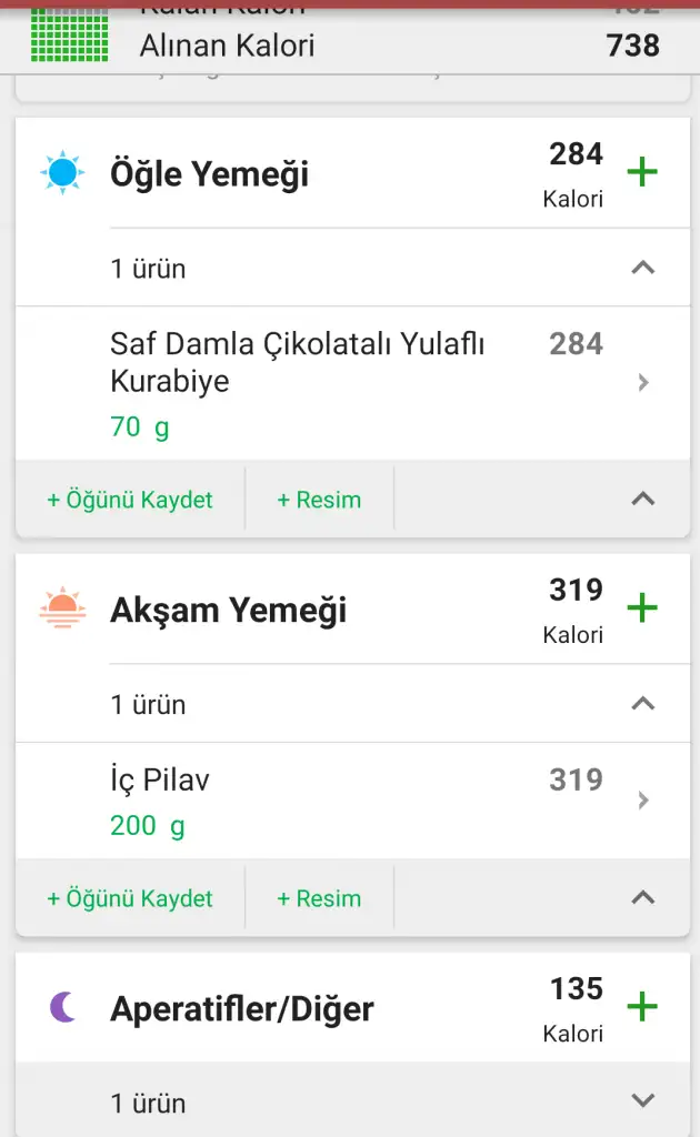Öğle 3 ara 2 akşam da yine 3 tane yedim kahveyi de sütlü içtimÇok mu yedin