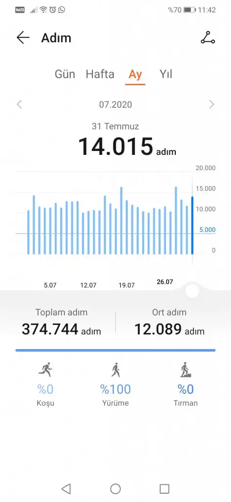 Temmuz ayı yürüyüş etkinliğim. Hiç firem yok. Bir maşallahınızı alırım