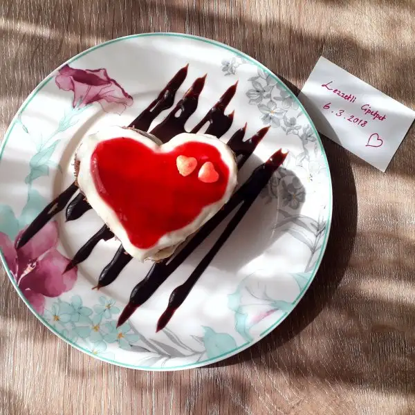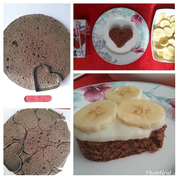 Pandispanyanın katları ayrılır, kek küçük kalpler şeklinde kesilir (ben kurabiye kalıbı kullandım)