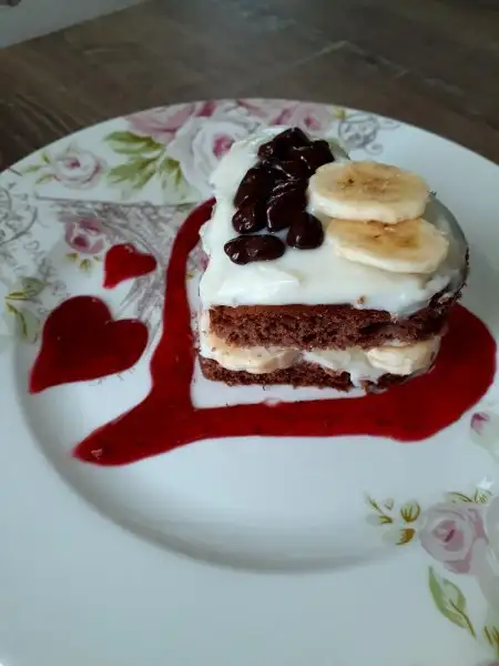 Kek çilekli sütle ıslatır, 1-2 yemek kaşığı kremadan konur ve üzerine muz konur, üstüne bir kek daha konup yine 1-2 yemek yemek kaşığı krema sürülür.