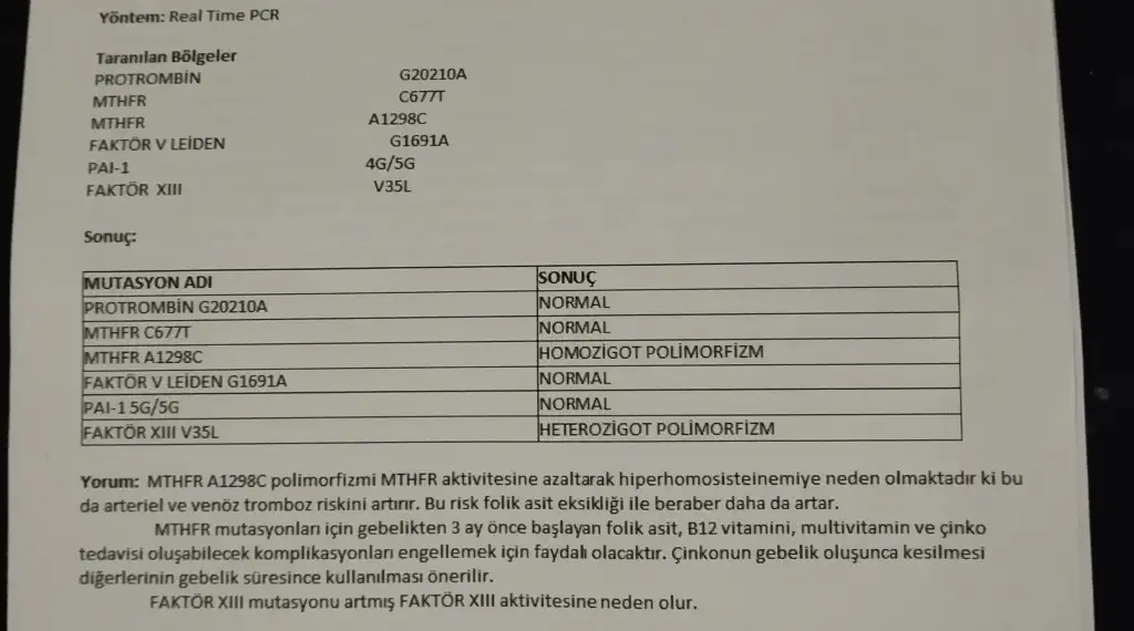 Lütfen yardımcı olur musunuz bu genleri bilen böyle olan biri var mı preeklampsi geçirdim onun üstüne bu testi yaptırdım. Ve ilk haftalarda şiddetli kanamalarım olmuştu bu genler yüzünden mi acaba yardımcı olur musunuz