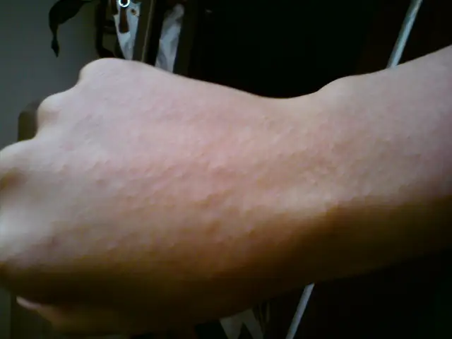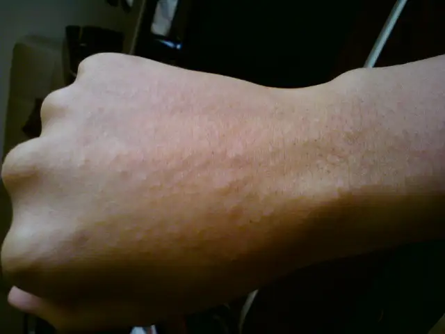 arkadaşlar geçtiğimiz hafta perşembe gecesi benim de ellerim kabardı.kabarıp kabarıp sönüyordu.yani bir saat öncesi ve sonrası birbirini tutmuyordu.gece acile gittik.bişey yapmadılar.ertesi gün cildiye uzmanına gittim.atopik dermatit teşhisi koydu.iki krem,bir de hap verdi.bir hafta kullanıp ondan sonra ilaçları bırakmamı istedi.kullandığım sabundan veya herhangi bir kozmetik üründen olabilirmiş.ellerimi çok sık yıkarım ben.bunun da etkisi olabilir dedi.ilaçları kullandım geçti çok şükür.işte kabardığı anların resmi.