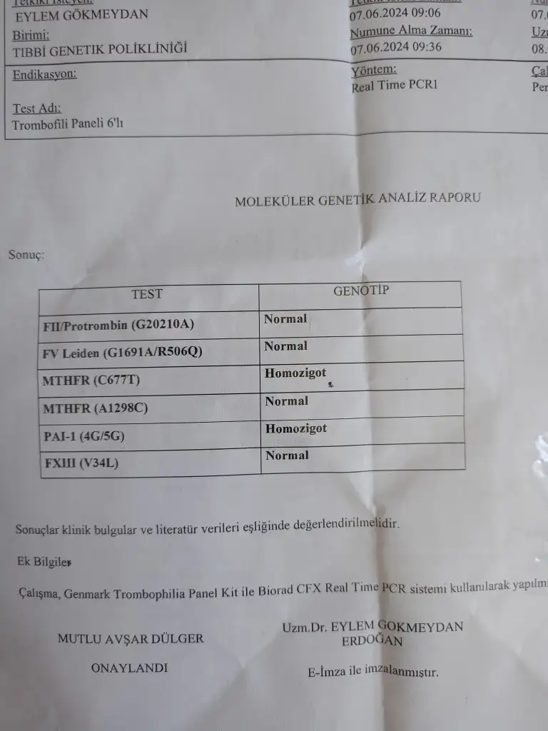 Benim 4 yıl hiç hamileliğim olmadı. 2 fr tüp bebek sürecim oldu negatif sonuçlandı. 3 değerim heterozigot çıkmış .